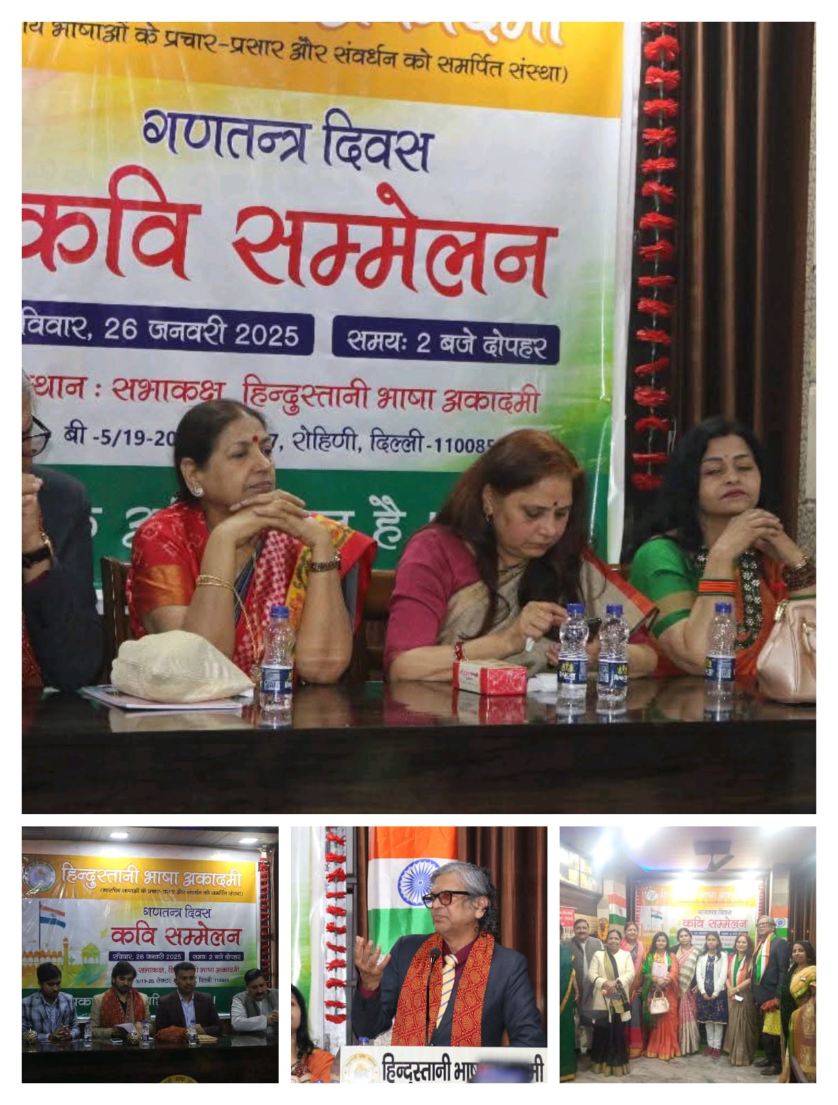 रविवार, 26 जनवरी, 2025 को रोहिणी स्थित अकादमी के सभा-कक्ष में 76वें गणतंत्र दिवस पर परिचर्चा ‘लोकतंत्र में भाषा तंत्र’ एवं कवि सम्मेलन का आयोजन सम्पन्न किया गया । दीप प्रज्ज्वलन एवं अतिथियों के सम्मान के बाद कार्यक्रम को विधिवत रूप से शुभारम्भ किया गया । परिचर्चा में श्री उदय सिंह राठौड़, निदेशक, कैरेट लॉज एकेडेमी, डॉ.अनुराग सिंह शेखर, सहायक प्राध्यापक, श्यामा प्रसाद मुखर्जी महिला महाविद्यालय, दिल्ली विश्वविद्यालय, श्री अंकित देव अर्पण, संस्थापक, राइटर्स कम्युनिटी और हिन्दुस्तानी भाषा अकादमी के अध्यक्ष श्री सुधाकर पाठक मंचासीन थे । मंचासीन अतिथियों ने लोकतंत्र में भाषा की उपस्थिति, लोकतंत्र का महत्त्व, संविधान में भाषा की संवेदनशीलता, वर्तमान परिदृश्य में नागरिकों और राजनेताओं के भाषा संस्कार, नई पीढ़ी में भाषा का सौन्दर्य बोध जैसे गंभीर विषयों को अपने वक्तव्यों में उठाया । द्वितीय सत्र में कवि सम्मेलन का आयोजन हुआ जिसमें वरिष्ठ साहित्यकार एवं पूर्व अतिरिक्त महानिदेशक, आकाशवाणी डॉ. लक्ष्मी शंकर वाजपेयी, प्रतिष्ठित कवयित्री एवं शिक्षाविद डॉ. सीता सागर, श्रीमती ममता किरण, डॉ. भावना तिवारी एवं श्री मनोज मिश्र कप्तान मंचासीन थे ।